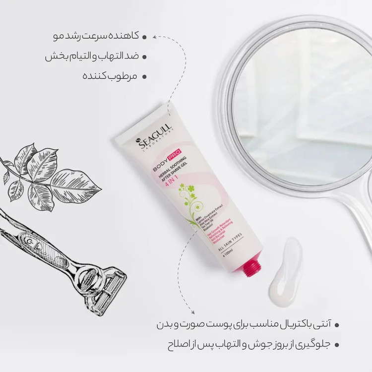 بعد از اصلاح برای اینکه پوست دچار التهاب نشه و جوش نزنه میتونین ژل التیامبخش سیگل رو روی پوستتون بزنین. چون این ژل ترکیبات گیاهی داره که باعث التیام پوست میشه و سرعت رشد مو رو هم کاهش میده.👌