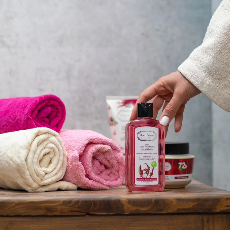 شامپو موهای رنگ شده دیپ سنس؛ ترکیبی از روغن #آملا، عصارهی بابونه و آمارنت هست که علاوه بر تقویت موهای آسیب دیده در اثر رنگ و دکلره، به تثبیت رنگ موها و جلوگیری از گره خوردن موها کمک میکنه 🧴🛁👱♀️