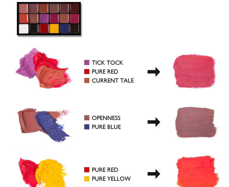 به وسیله قاشقک مخصوص، مقداری از رنگ های مورد نظر را بردارید و آن ها را روی ظرف مخصوص ترکیب کنید. سپس با استفاده از براش، رژ را به لب های خود بزنید.