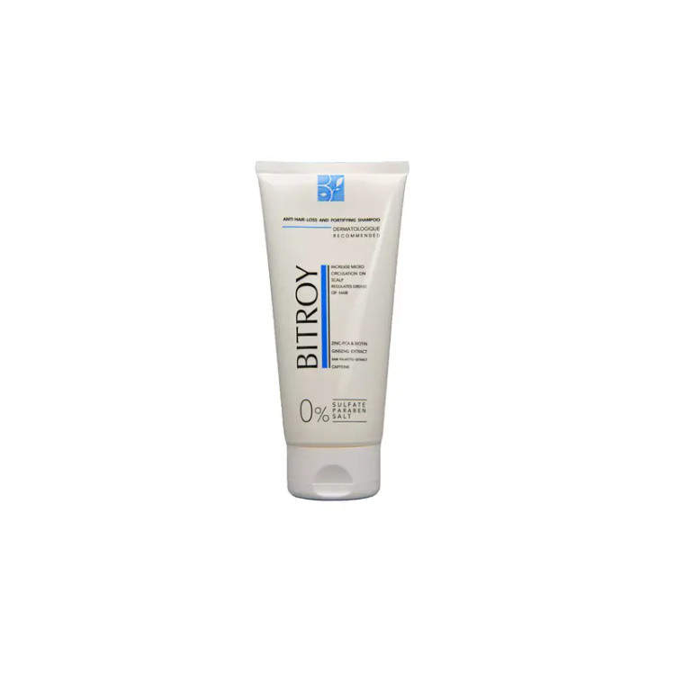شامپو تقویت کننده و ضدریزش مو بیتروی، یکی از محصولات بهداشتی مراقبتی مربوط به مو بوده که به منظور تقویت و جلوگیری از ریزش موی سر مورد استفاده قرار میگیرد. این محصول با فرمولاسیون ویژه خود از ریزش موی آندروژنیک جلوگیری کرده و همچنین به افزایش تعداد موهای در حال رشد هم کمک میکند. این محصول پیاز مو را تقویت کرده و موجب فعالسازی پیاز مو خواهدشد. همچنین جریان خون مویرگی به سمت پیاز مو افزایش یافته، موجب افزیش حجم و پرپشت شدن موها هم میشود.