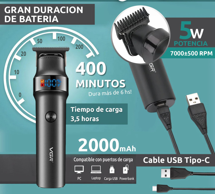 باتری با ماندگاری طولانی: مجهز به باتری لیتیومی 2000 میلی آمپر ساعتی، این ماشین اصلاح زمان استفاده طولانی تری را فراهم می کند و آن را برای استفاده خانگی و حرفه ای مناسب می کند.